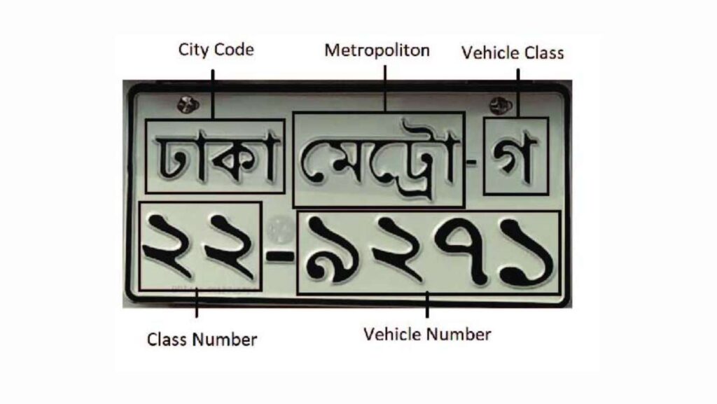 বাংলাদেশে নাম্বার প্লেটের শুরুতে সাধারণত শহর, জেলা বা মেট্রোপলিটন এলাকার নাম থাকে। এটি জানায় গাড়িটি কোথায় নিবন্ধিত হয়েছে।